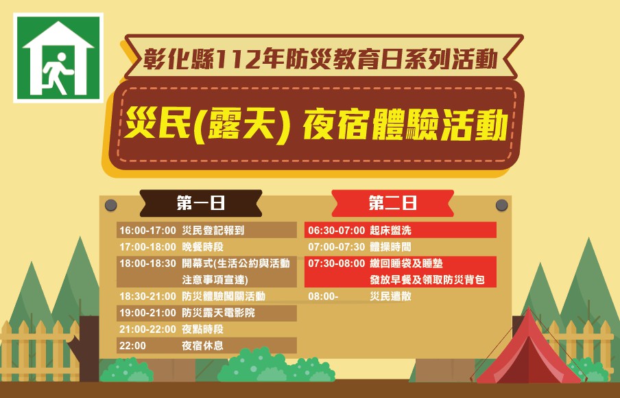 - 民眾欲報名參加災民夜宿體驗活動者,均須先上網登記相關資料,不受理以其他方式報名。